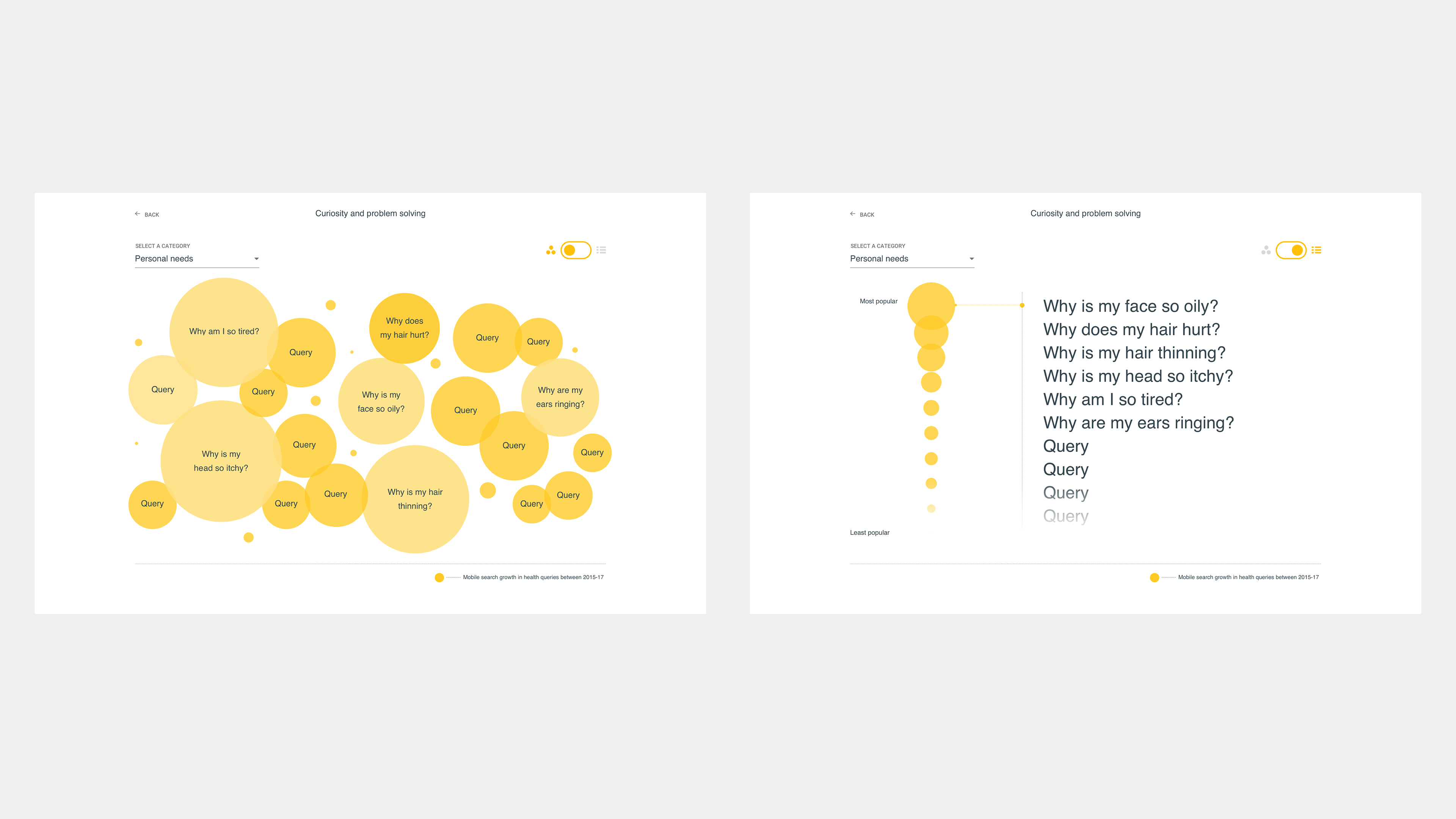 UI design for Think with Google, this site shows different data graphics for the Google personal searches yearly report. Prototypes and animations made in Principle and After effects. Character design study to add human factor in the design.